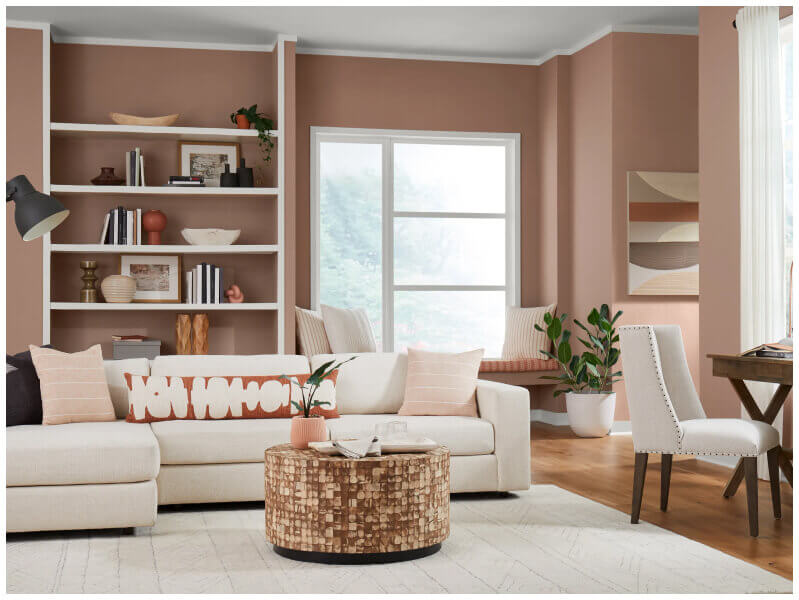 Embrace a spirit of connection with the world around us with this soulful-yet-subtle hue. Minimal yet cozy, this color creates a comforting backdrop for the everyday moments that matter. It is warm, inviting, rich, earthy hue that’s more neutral than you might think. It’s a rosy brown and has undertones of red, brown, and blue. It’s very reminiscent of a makeup palette with its soft, dark, blush tones.